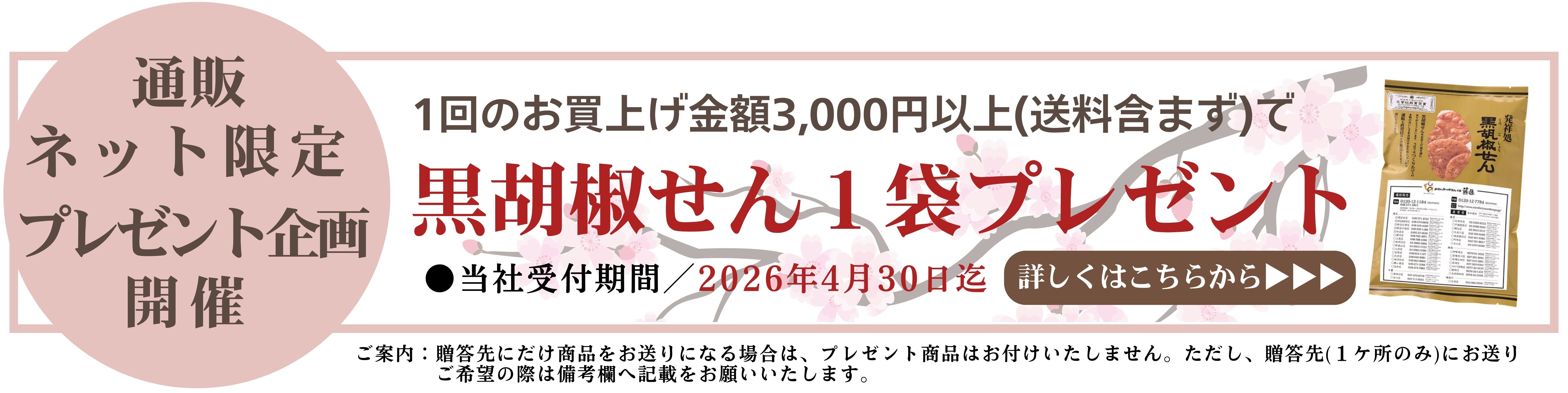 - 【通販限定企画】『黒胡椒せん』プレゼントキャンペーン3月10日スタート!